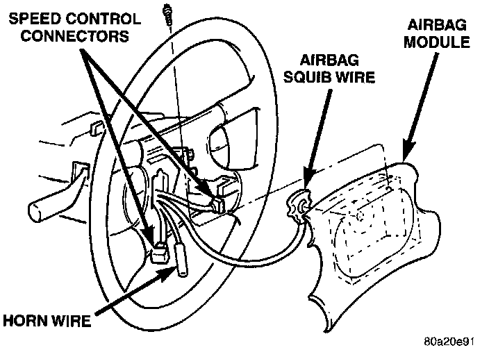 2. Remove speed control switches or covers from steering wheel armature and disconnect the wires.