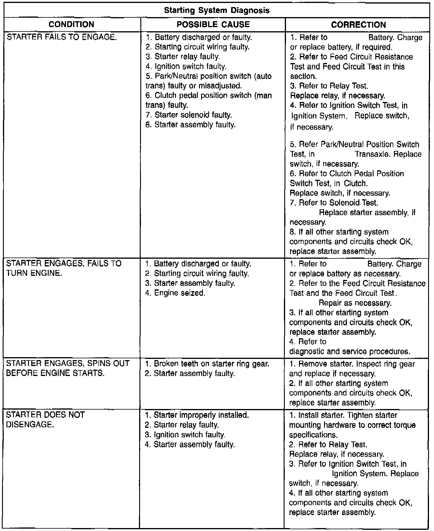 Starting System Diagnosis: