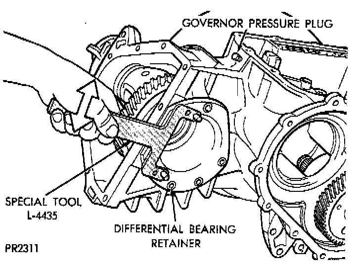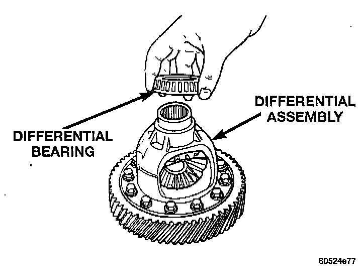 WARNING: Hold onto differential assembly to prevent it from rolling out of housing.