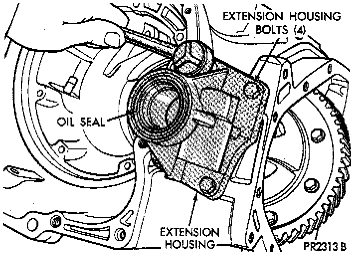 Use MOPAR Silicone Rubber Adhesive Sealant, or equivalent, when installing extension housing.