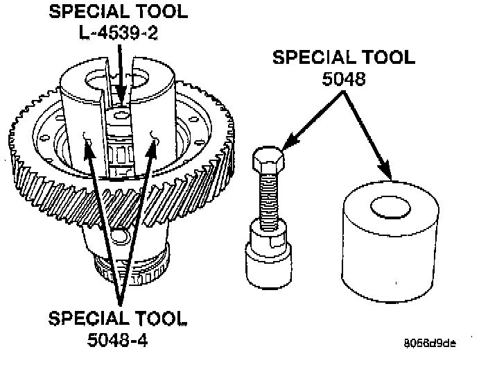 Position Tool 5048 Over Button And Collets At Differential Bearing: