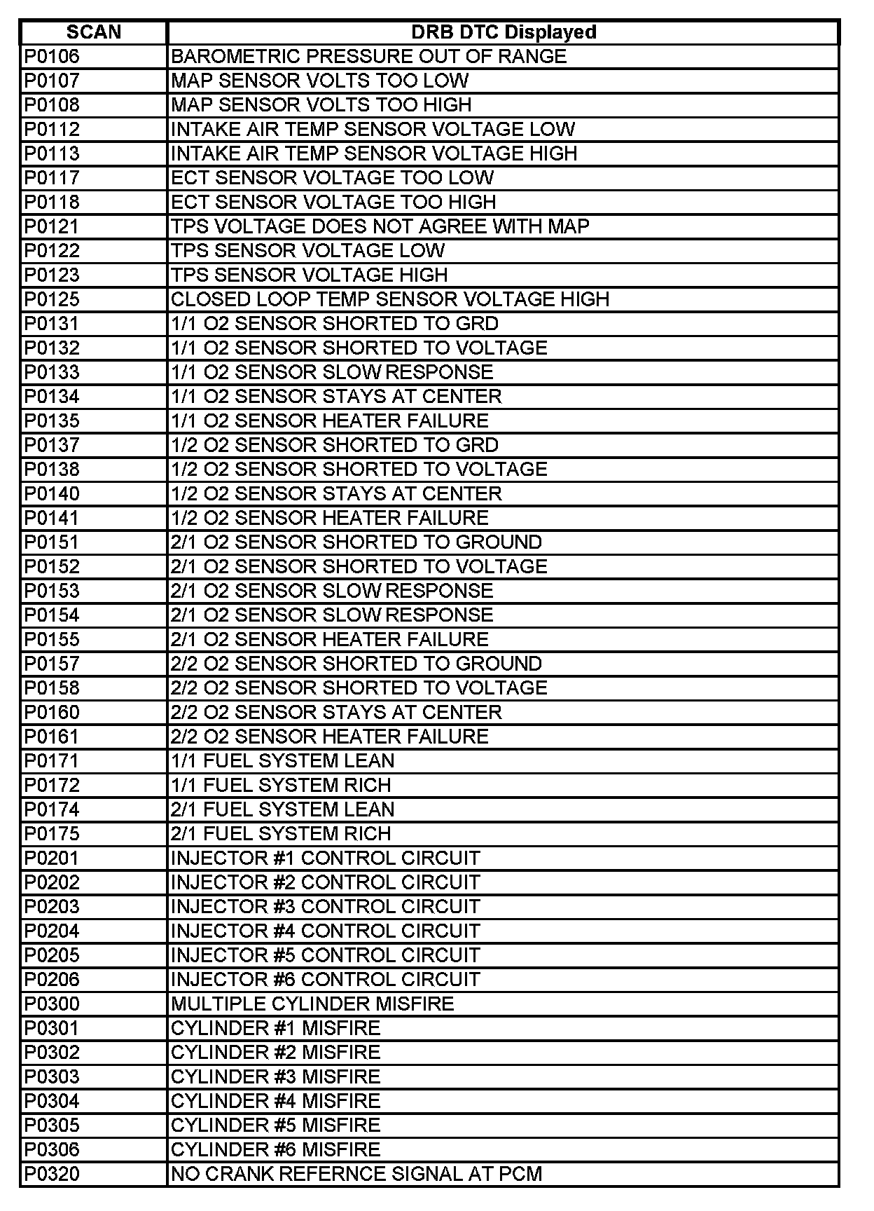 P0106 - P0320: