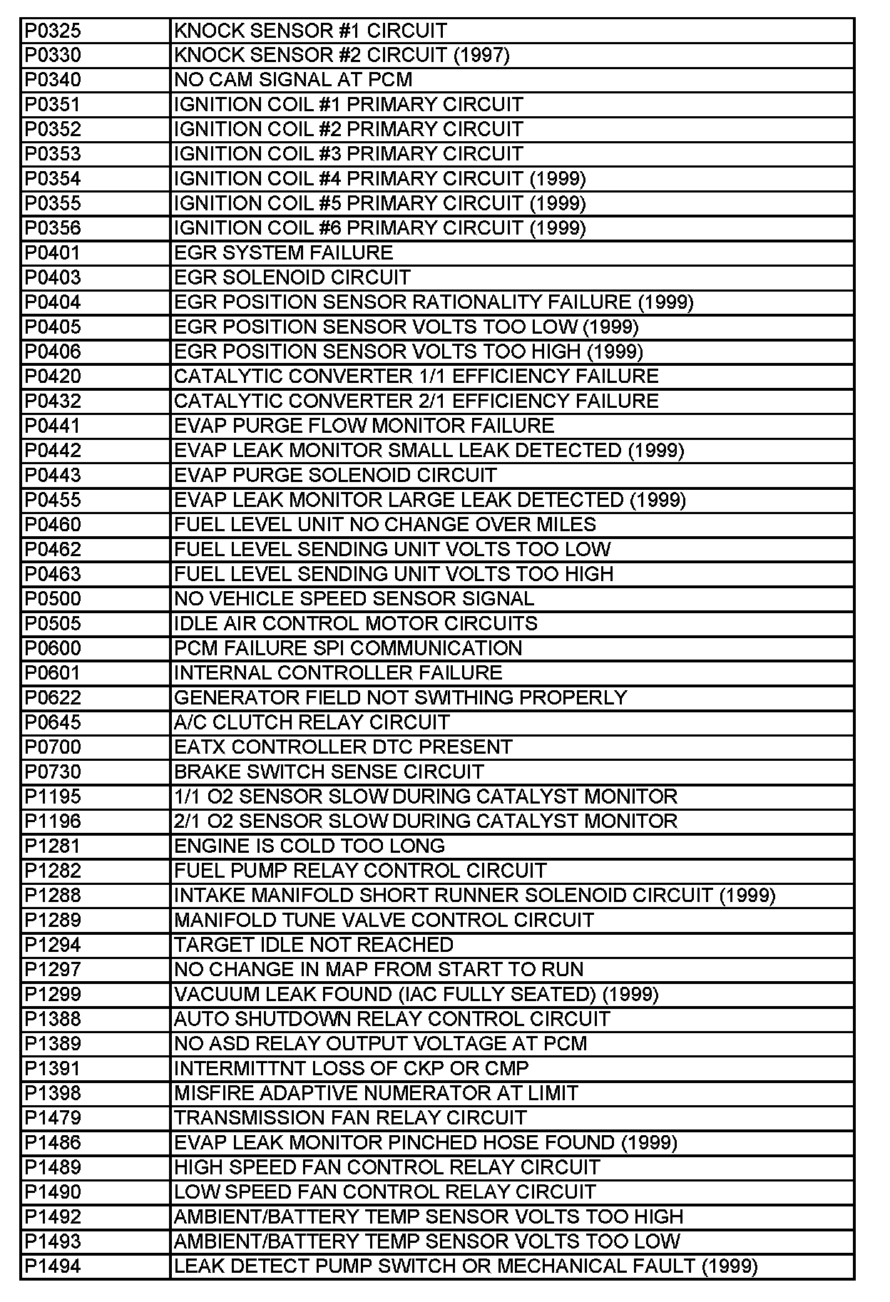 A L L Diagnostic Trouble Codes ( DTC )