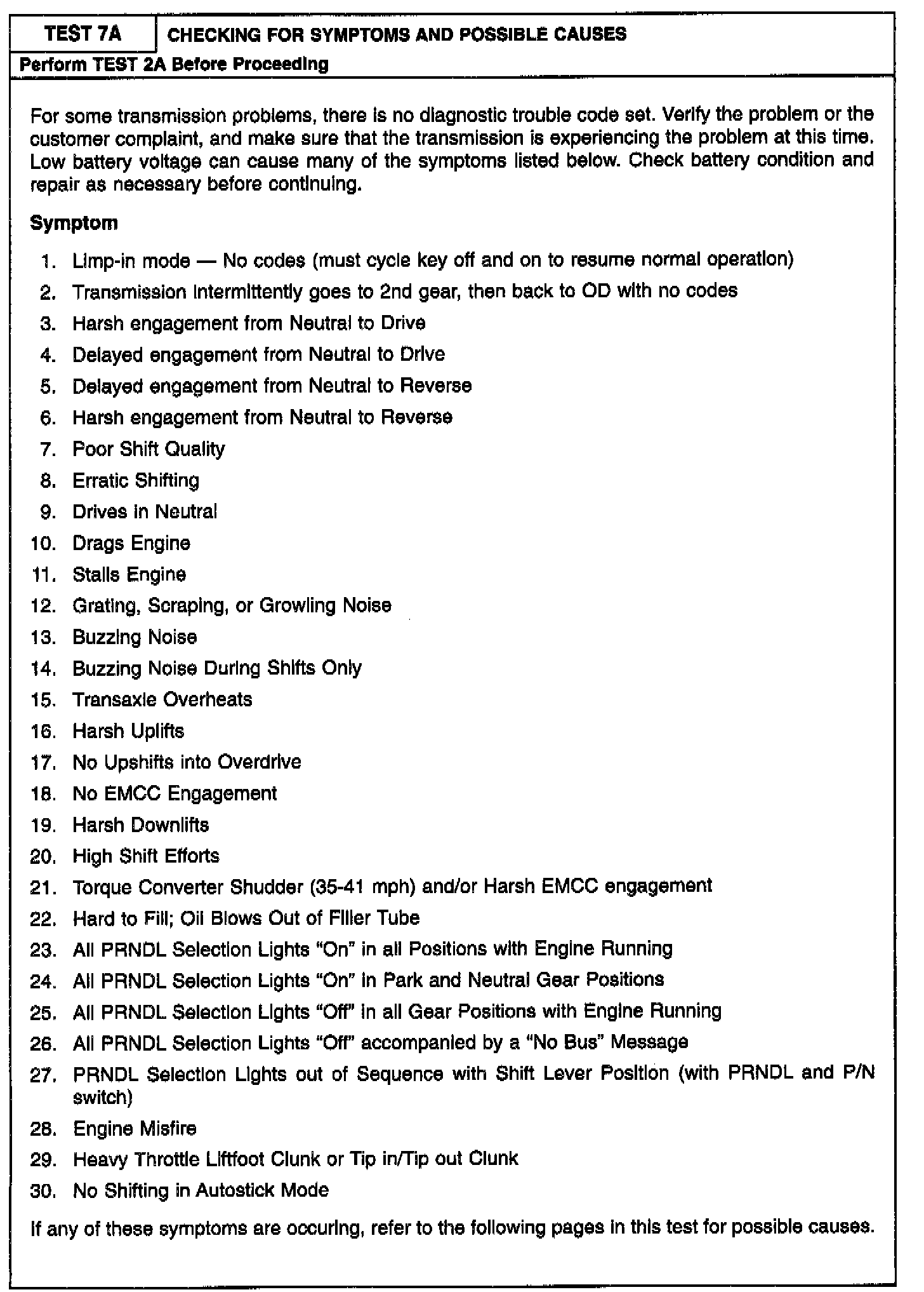 7A Checking For Symptoms and Possible Causes