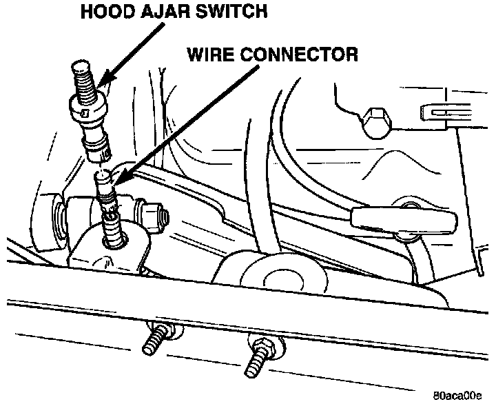 3. Disconnect the wire connector from the hood ajar switch and remove the switch.