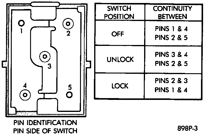 3. Using an ohmmeter, test switch continuity. Refer to Door Lock Switch Test table.
