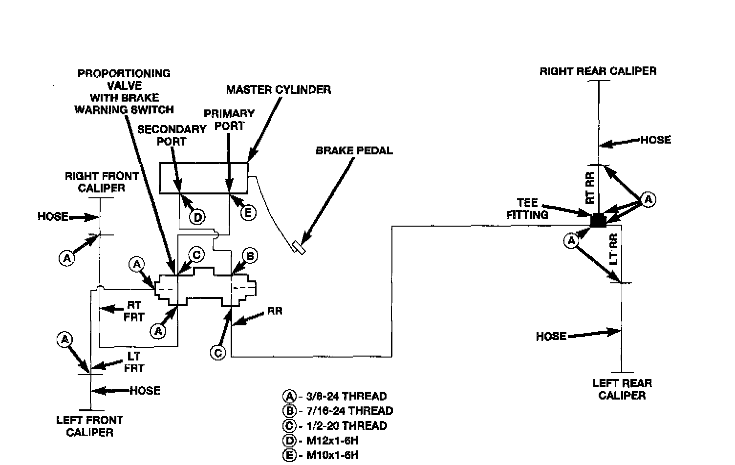 Vertically Split Hydraulic Braking System Tube Routing And Tube Nut Thread Size: