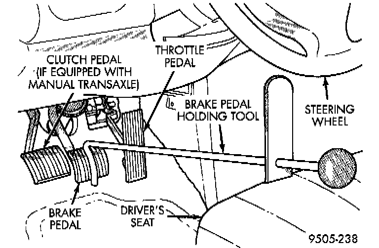 10. Remove the brake pedal holding tool from the brake pedal.