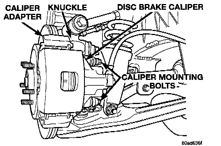 3. Install the disc brake caliper on the caliper adapter, reversing the removal procedure.