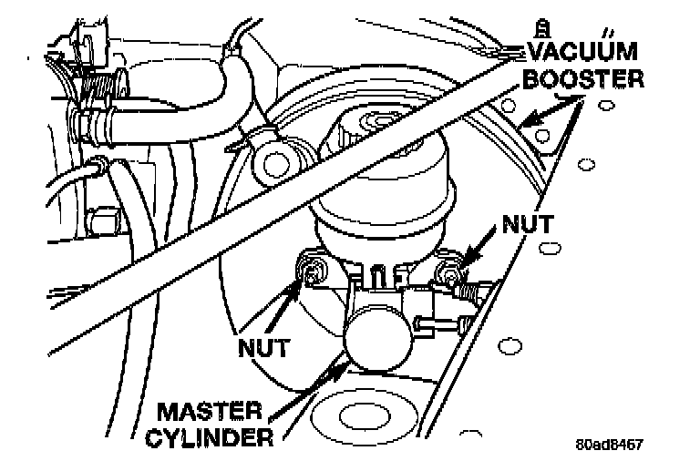 Caution: Before removing the master cylinder from the vacuum booster, the master cylinder and vacuum booster must be thoroughly cleaned. This must be done to prevent dirt from failing into the vacuum booster.