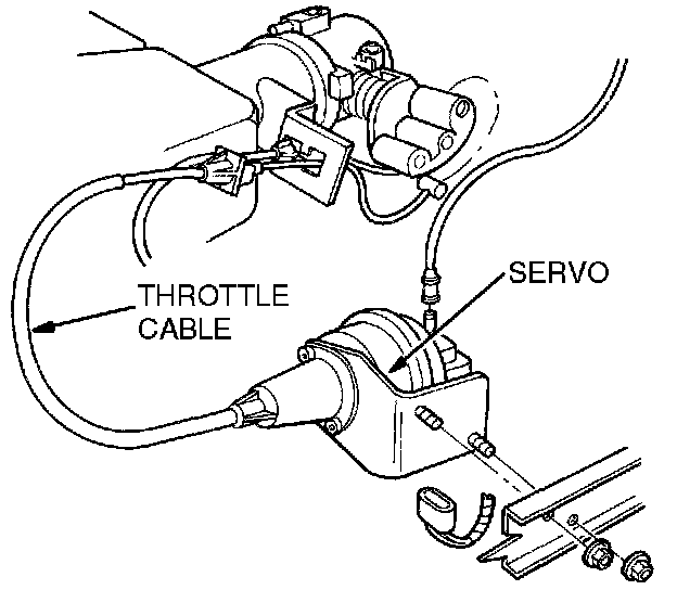 The speed control servo cable is connected between the speed control vacuum servo diaphragm and the throttle body control linkage. This cable causes the throttle control linkage to open or close the throttle valve in response to movement of the vacuum servo diaphragm.