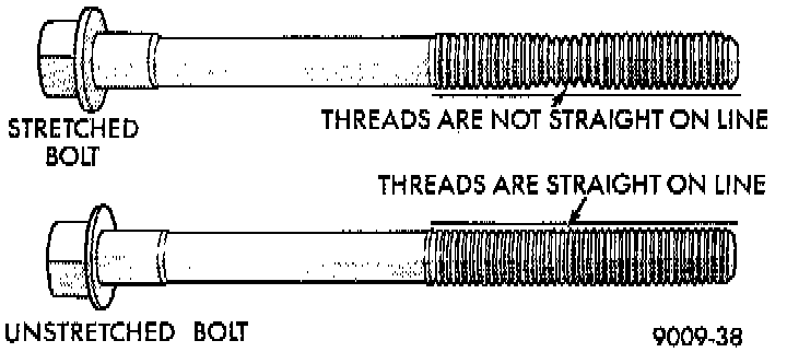 ^ The cylinder head bolts are tightened using a torque-to-yield procedure. The bolts must be examined BEFORE reuse. If the threads are necked down the bolts should be replaced.
