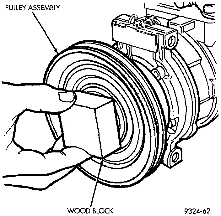 3. Install pulley assembly to compressor. If necessary, tap gently with a block of wood on the friction surface.