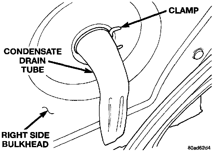 - Check the drain tube nipple on the heater-A/C housing for any obstructions.