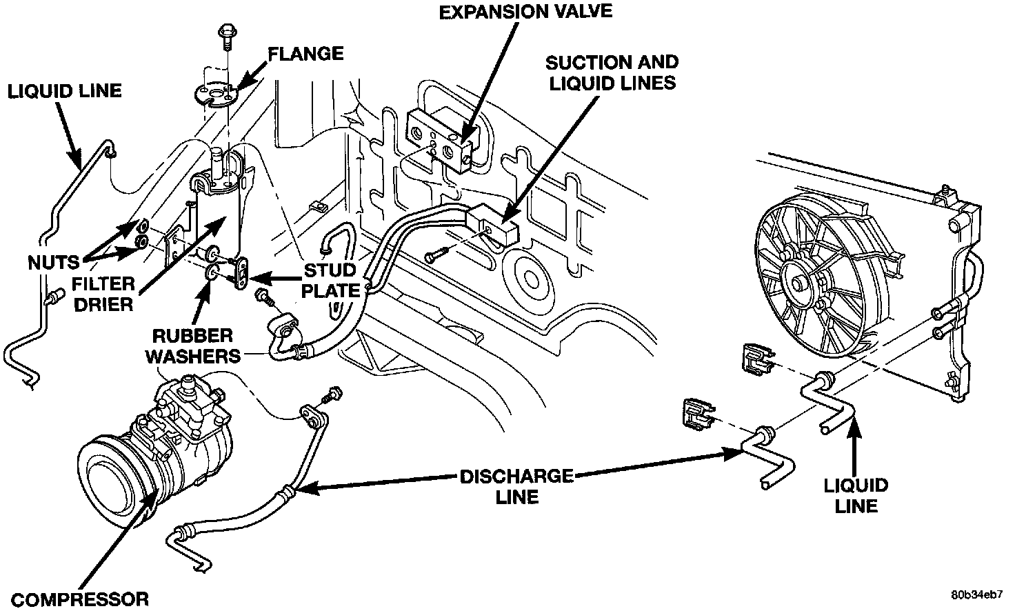 - Remove flange bolts attaching lines to the receiver/drier.