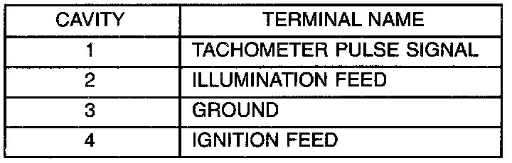 3. Using voltage meter, test voltage between Pin 3 and Pin. Refer to Tachometer Terminal Identification table.