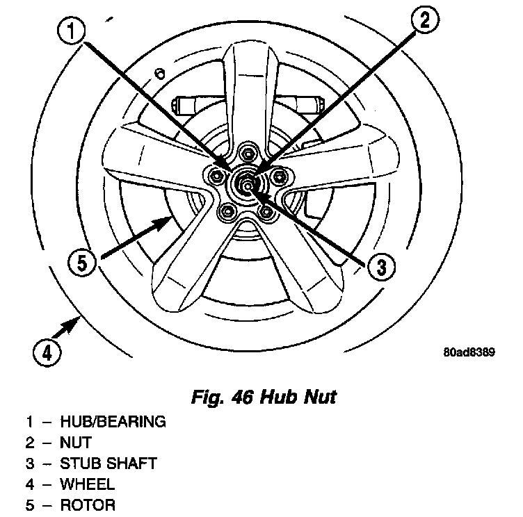 2. With the weight of the vehicle supported by the tires and the parking brake applied, loosen hut do not remove the stub shaft to hub bearing nut.