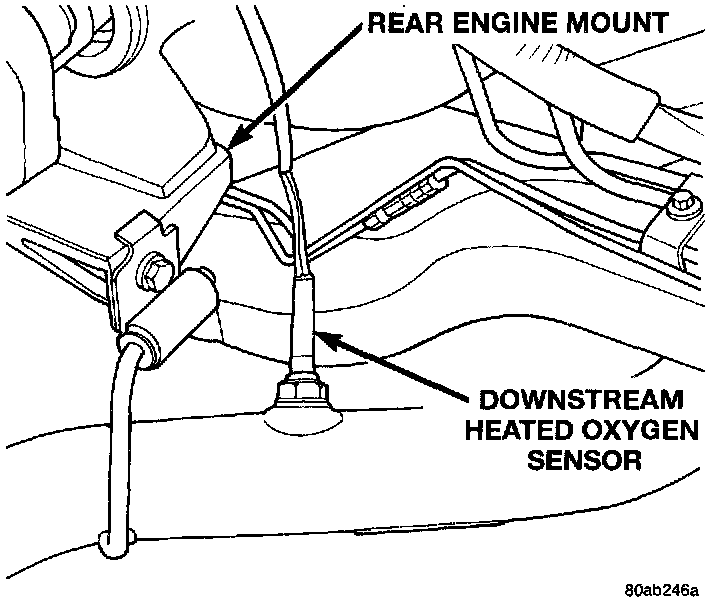 The downstream heated oxygen sensor threads into the outlet pipe at the rear of the catalytic converter. The downstream heated oxygen sensor input is used to detect catalytic converter deterioration. As the converter deteriorates, the input from the downstream sensor begins to match the upstream sensor input except for a slight time delay. By comparing the downstream heated oxygen sensor input to the input from the upstream sensor, the PCM calculates catalytic converter efficiency.