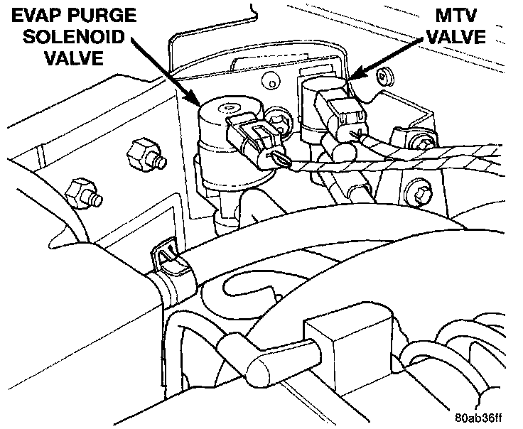 The solenoid will not operate unless it is installed correctly. The EVAP purge solenoid shares a bracket with the MTV solenoid.