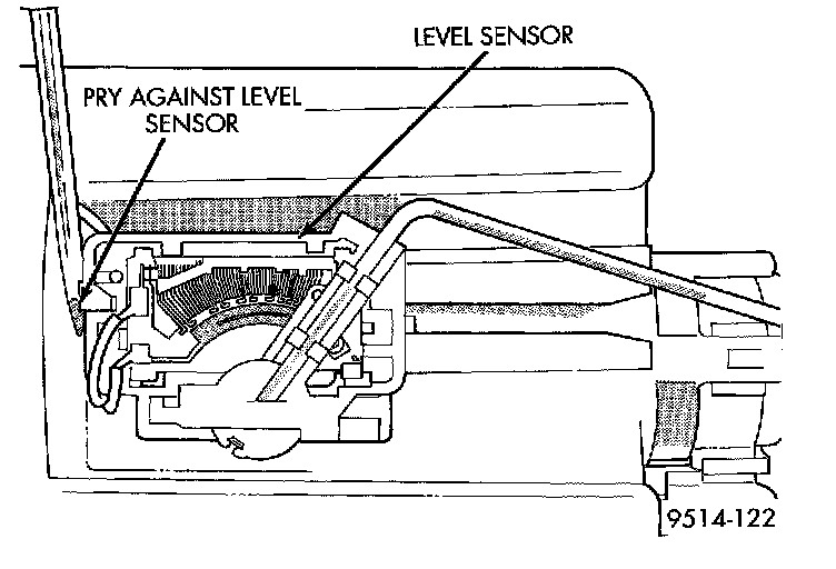 3. Insert a screwdriver between the fuel pump module and the top of the level sensor housing. Push level sensor down slightly.