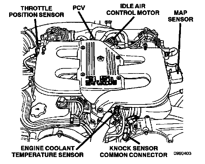 Throttle Position Sensor, PCV, Idle Air Control Motor, MAP Sensor, Knock Sensor Common Connector, Engine Coolant Temperature Sensor: