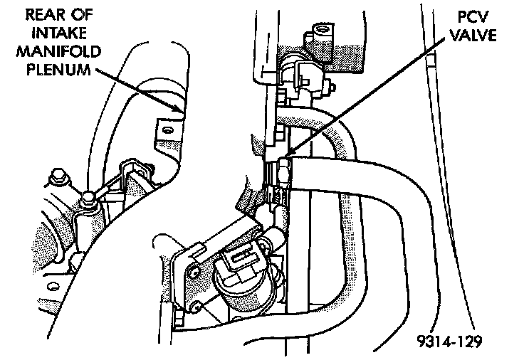 4. Disconnect the PCV valve hose from the PCV valve. Cap the PCV valve.