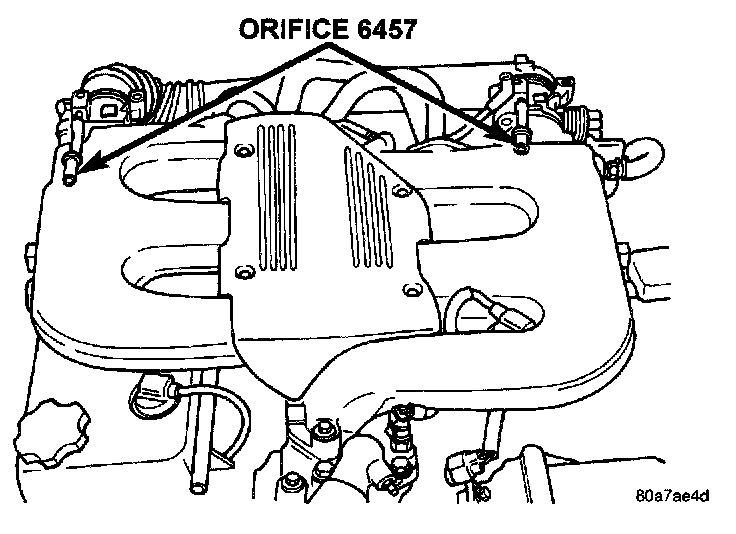 6. Use a piece of hose to attach an Air Metering Orifice 6457 (0.125 in. orifice) to the purge nipple on each throttle body.