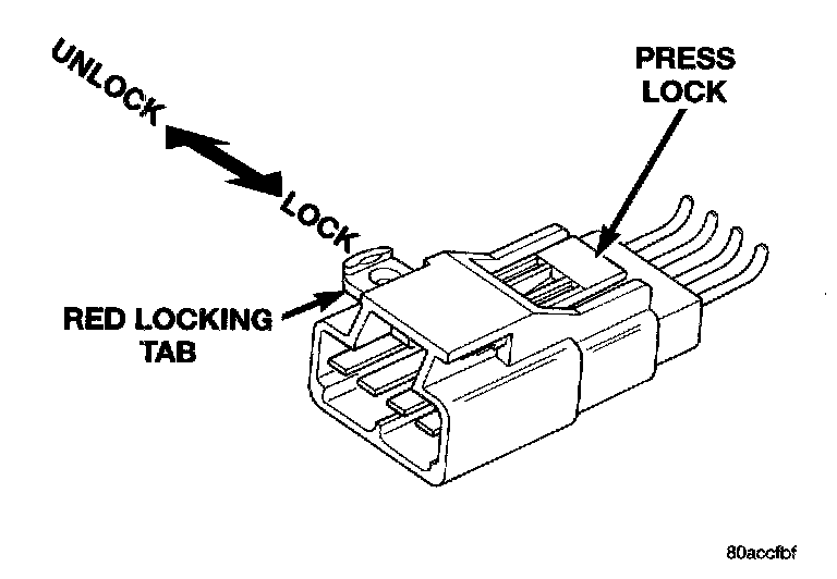 - Ensure that the red locking tab is in the lock position after installing the connector.