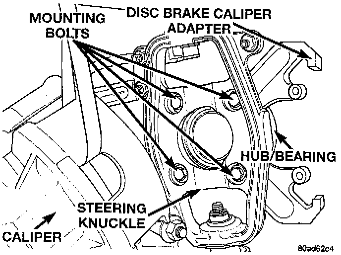 8. Remove the 4 bolts mounting the hub/ bearing and the caliper adapter to the steering knuckle