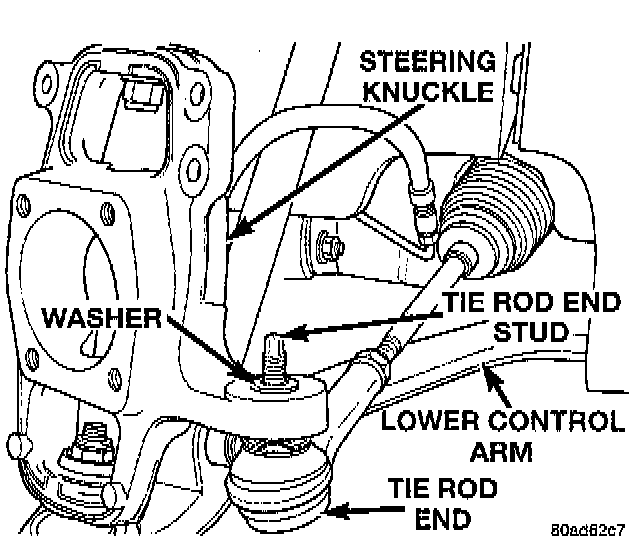 12. Remove the washer from the stud of the outer tie rod end.
