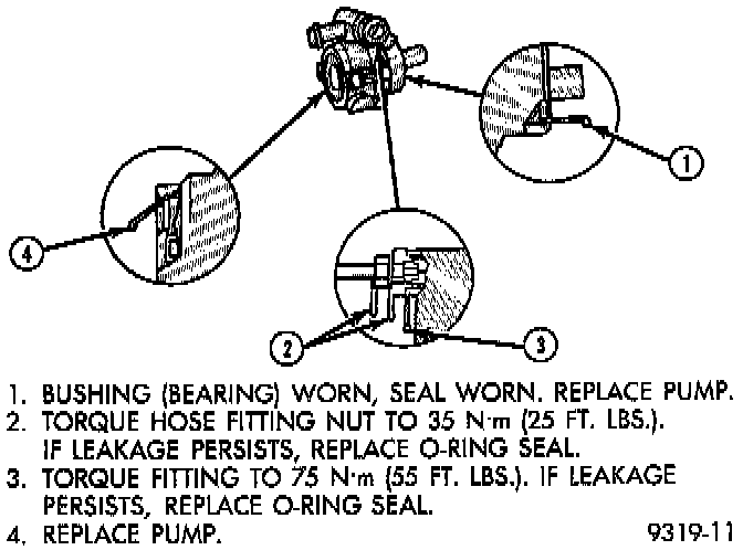 Repair of power steering fluid leaks from areas of the power steering pump sealed by O-rings is allowed.