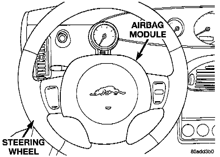 4. Remove the airbag module from the steering wheel. The airbag module is mounted to the steering wheel by a bolt located in each spoke of the steering wheel. Access for the mounting bolts is from the back side of each steering wheel spoke.