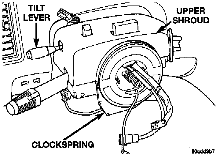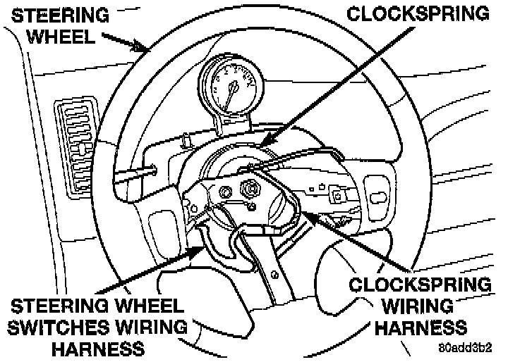 NOTE: If the wiring harness is not long enough to allow removing the clockspring with the harness attached, remove the wiring harness from the clockspring. Do not put a strain on the wiring harness when removing clockspring.
