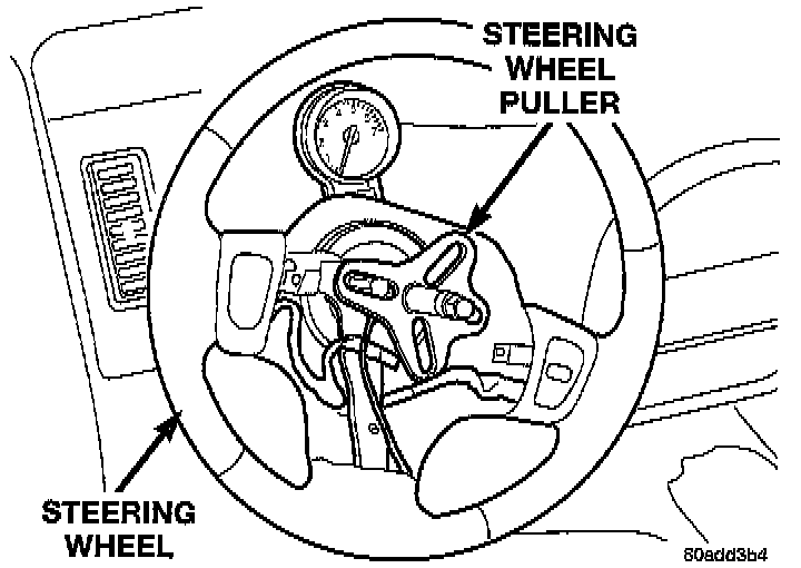 8. Install Puller, Snap-On CJ2001P or an equivalent three point puller on the steering wheel.