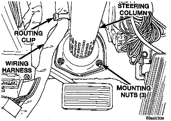 21. Remove wiring harness routing clip from steering column.