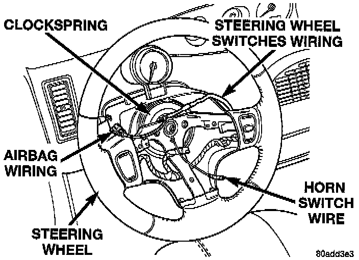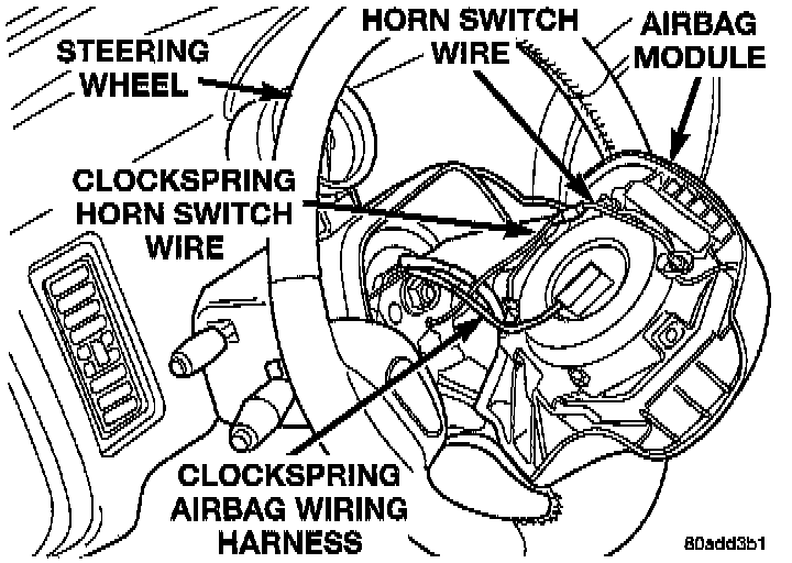 - From the end of the clockwise travel, slowly rotate the rotor two and one-half turns counterclockwise. The horn wire should be at the bottom and the airbag and steering wheel switches wiring should be at the top.