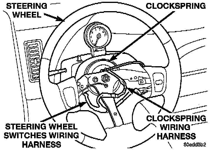 5. Connect wiring lead from clock spring into wiring harness on steering wheel for steering wheel mounted switches.