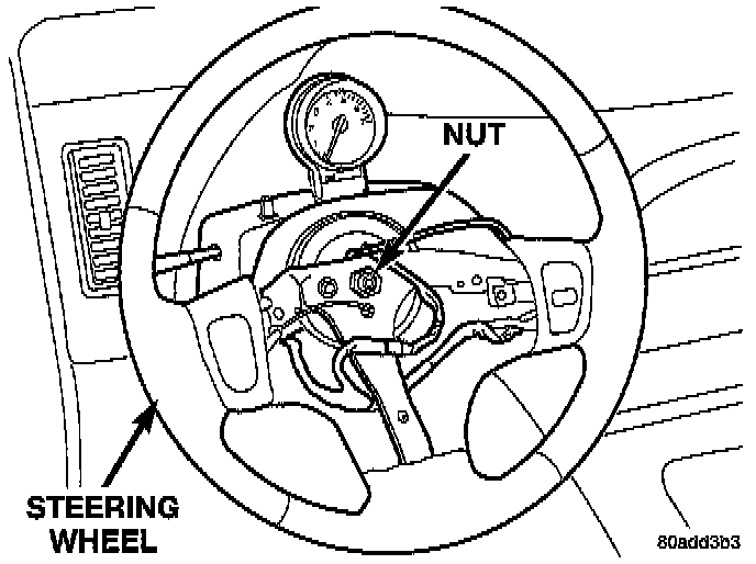 CAUTION: Do not install steering wheel onto shaft of steering column assembly by driving it onto the shaft. Pull steering wheel down onto steering column shaft using ONLY the steering wheel retaining nut.