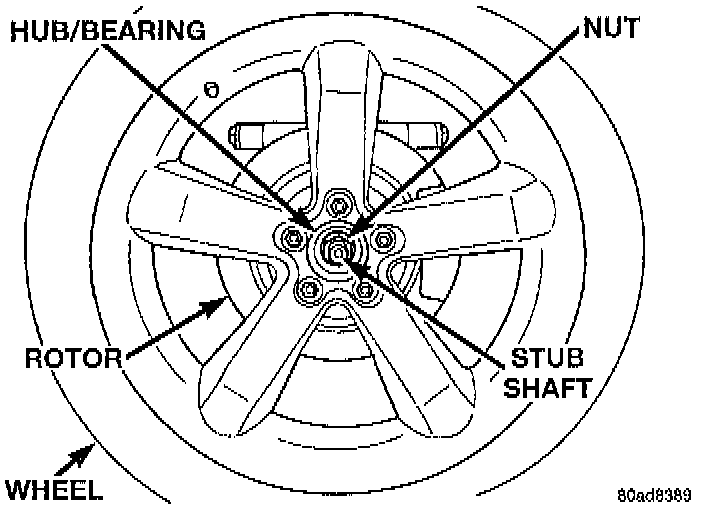 2. Loosen but do not remove the stub shaft to hub bearing nut.