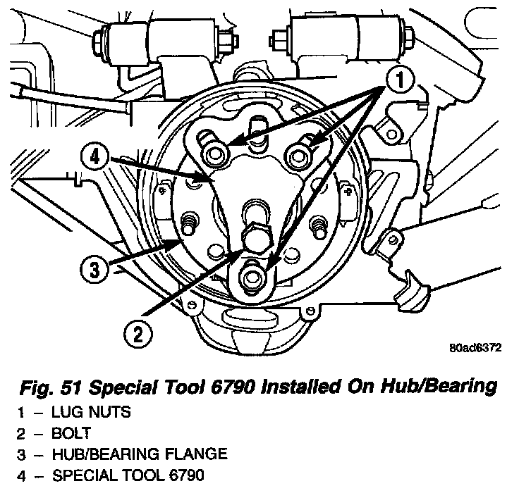 10. Install Puller, Special Tool 6790, or equivalent on the flange of the hub/bearing. Place the bolt of the puller in the center of the stub shaft.
