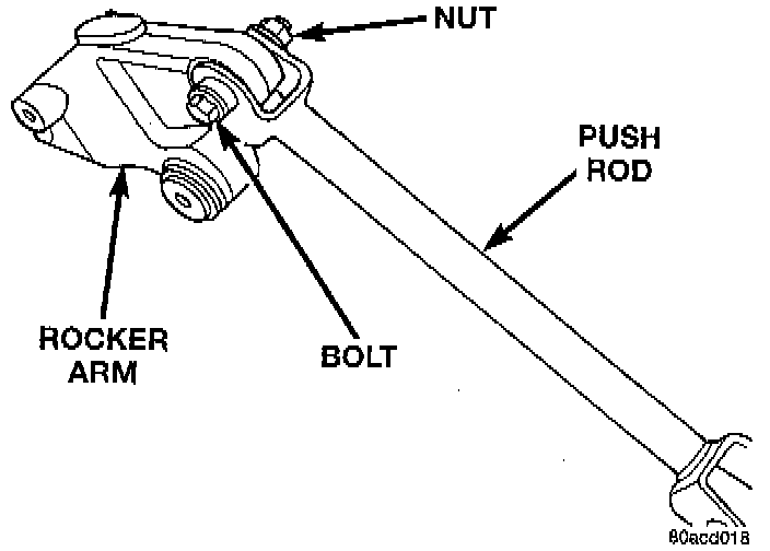 1. Install push rod on rocker arm. Install the push rod to rocker arm mounting bolt and nut.