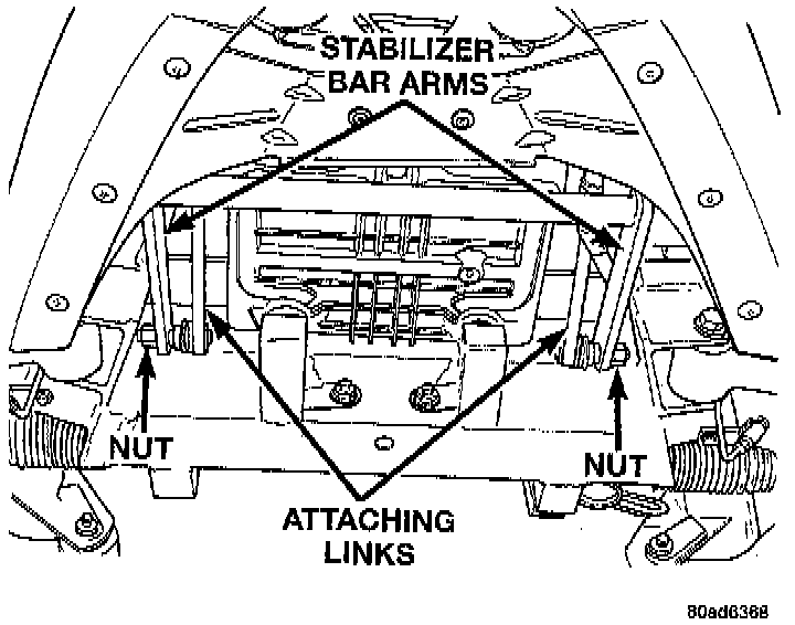 NOTE: The front stabilizer bar attaching links can be replaced without having to remove the stabilizer bar from the vehicle.REMOVE