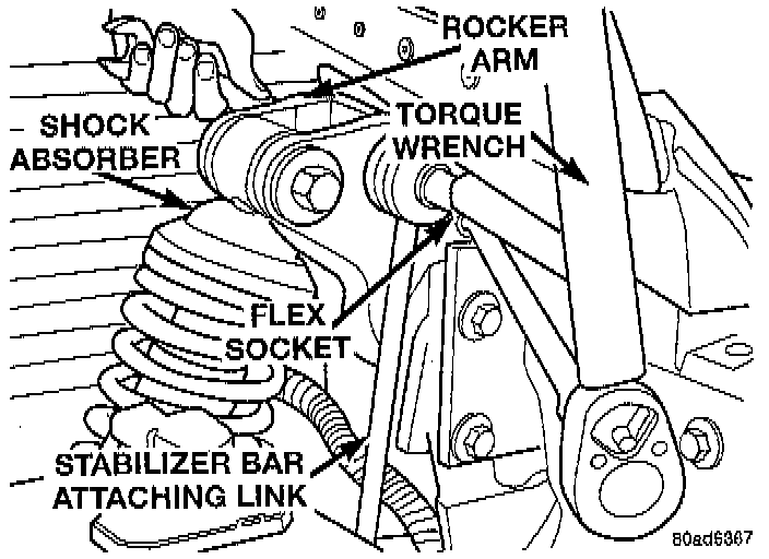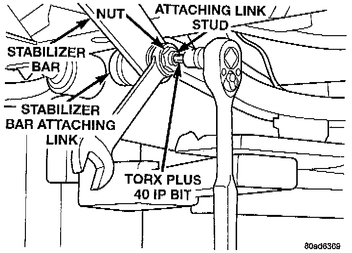 6. Tighten the stabilizer bar attaching link bolts using a flex socket and extension to a torque of 60 Nm (45 ft. lbs.).