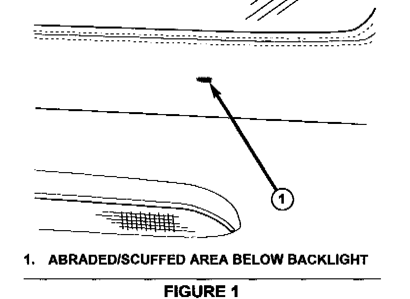 The convertible top cover may be damaged if the procedure in the Owner Manual to raise the top from its stored position to the in use position is not followed. The damaged area will be an abraded/scuffed area approximately 1 in. by 1/4 in., right of center and below the backlight, Figure 1.