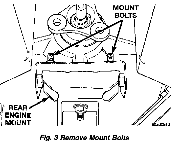 5. Remove the rear engine mount bolts at engine bell housing (Fig. 3).