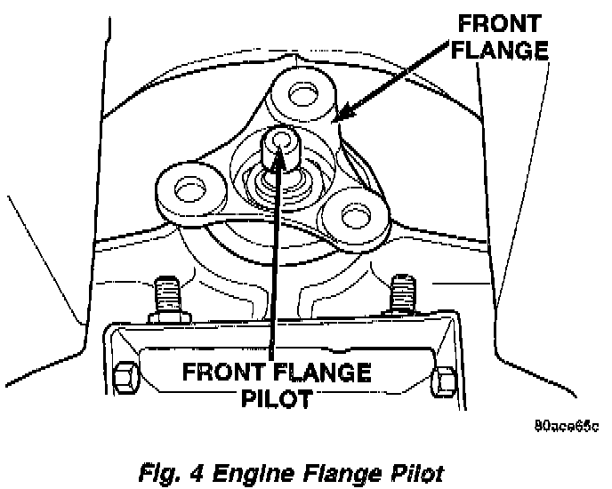 2. As bell housing is positioned, line up engine drive flange pilot to inner bearing of propshaft (Fig. 4).