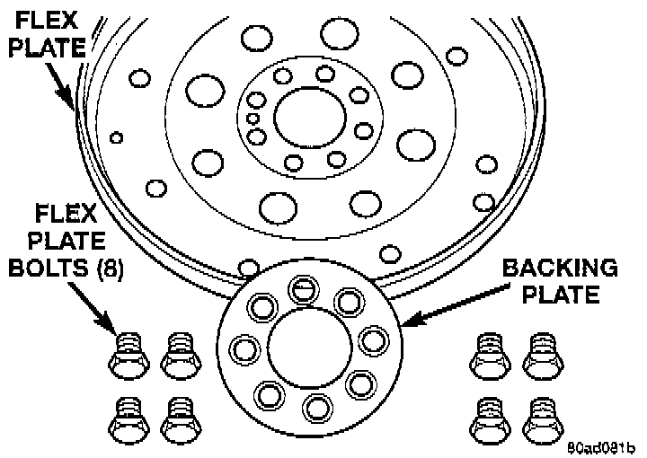 18. Install flex plate and backing plate.