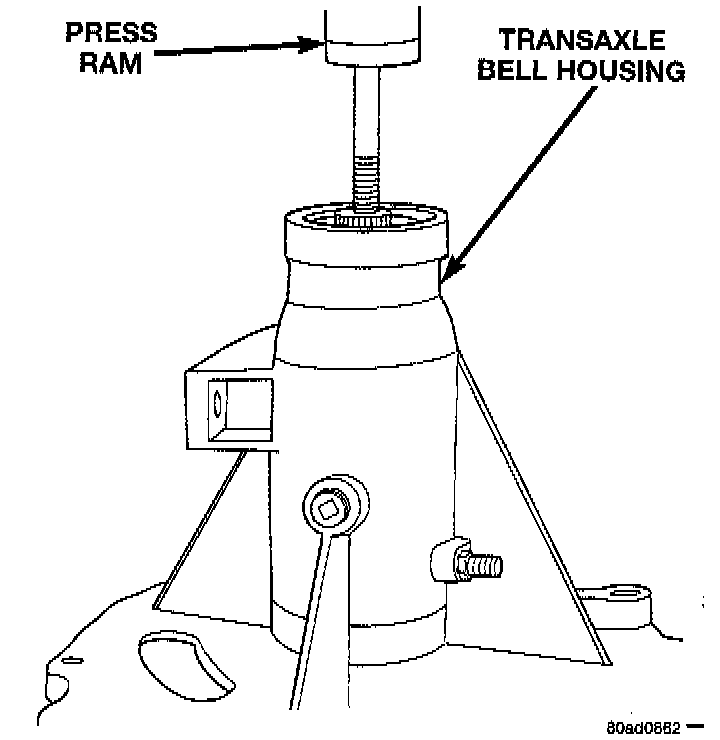 10. While holding onto bottom of shaft, press out shaft from bell housing.