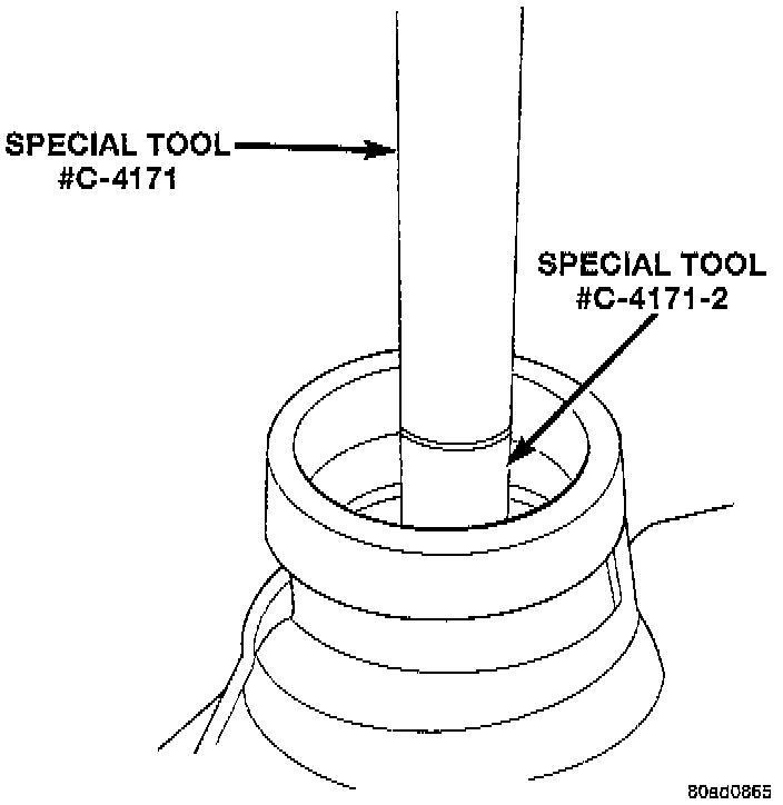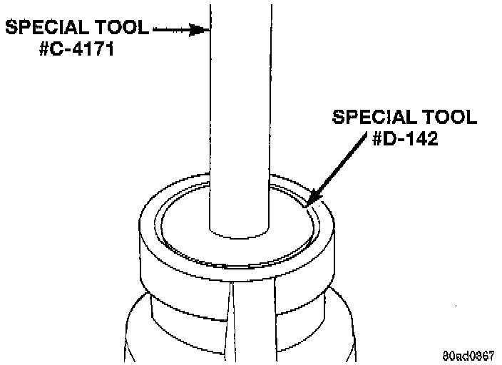 2. Install outer bearing cup using Special Tool # D-142 installer, and C-4171 driver, or equivalents.