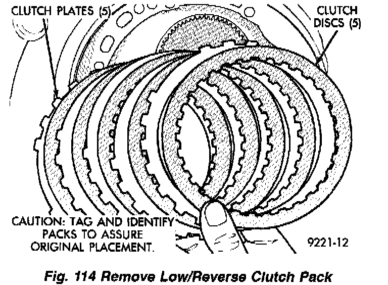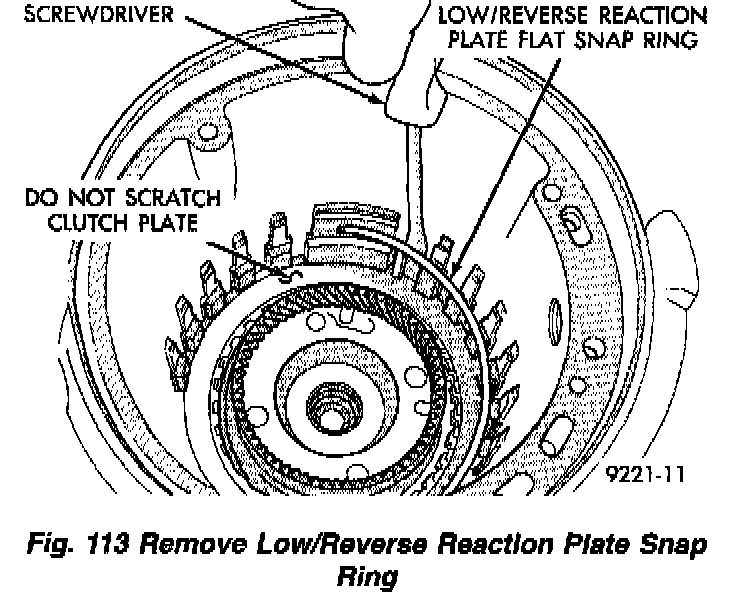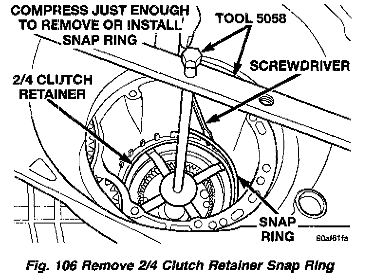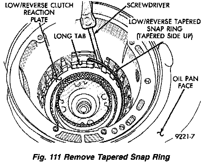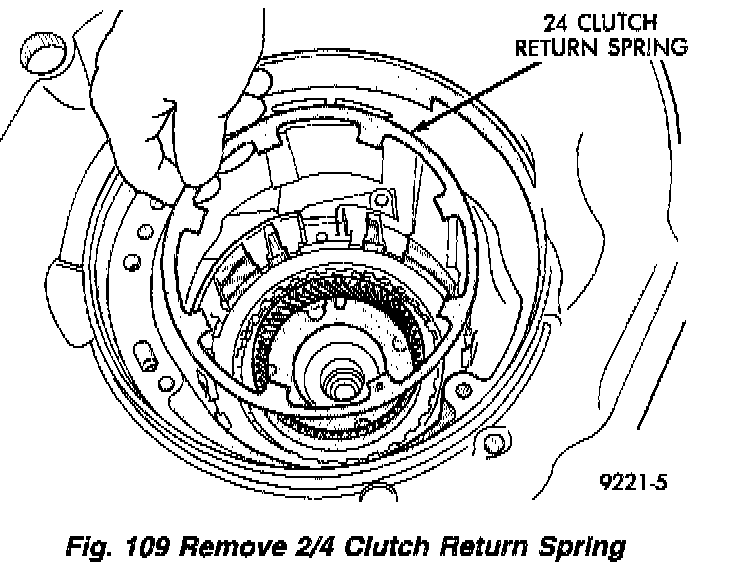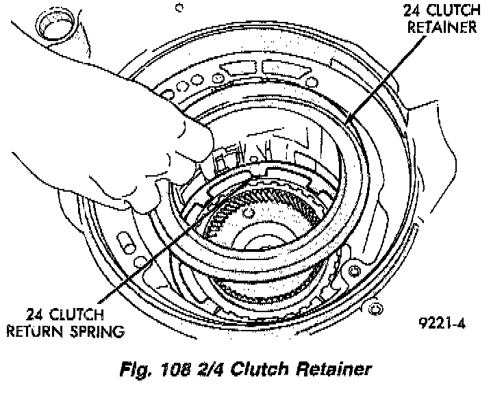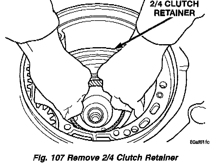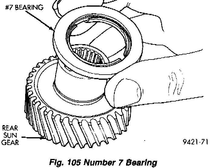The number 7 needle bearing has antireversal tabs and is common with the number 5 and number 2 position. The orientation should allow the bearing to seat flat against the rear sun gear (Fig. 105). A small amount of petrolatum can be used to hold the bearing to the rear sun gear.